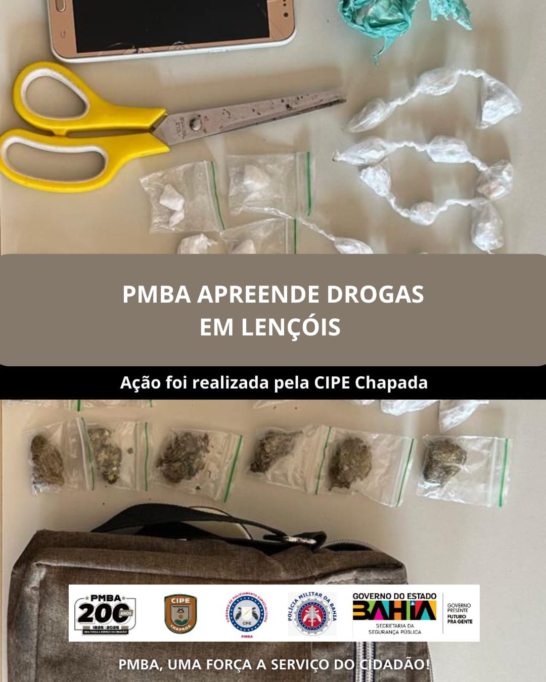 A ação reforça o compromisso contínuo da CIPE Chapada e da Polícia Militar da Bahia no combate ao tráfico de drogas e na preservação da ordem pública, por meio do policiamento especializado e da atuação firme em defesa da segurança da população da Chapada Diamantina.